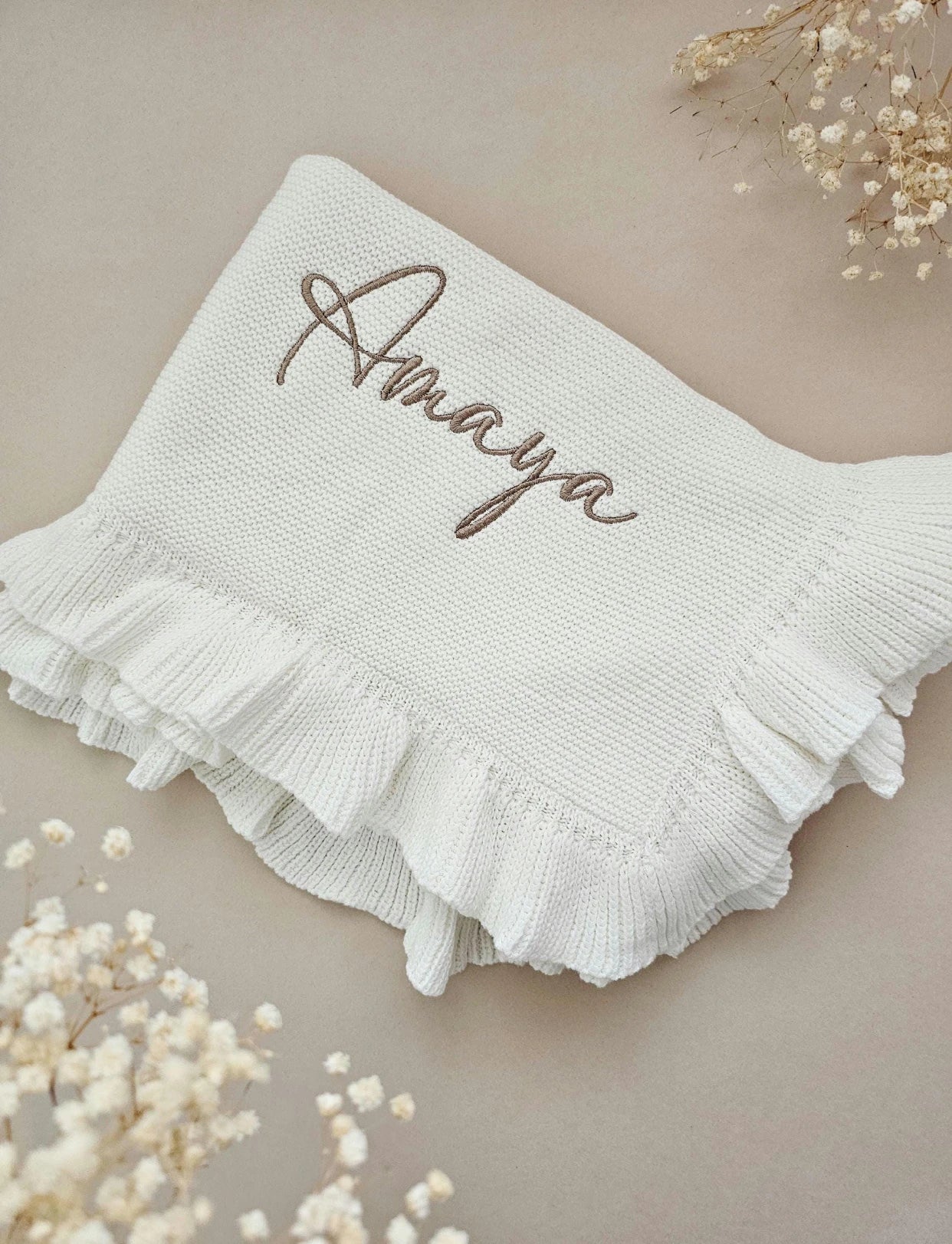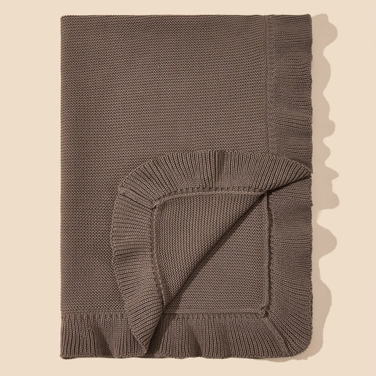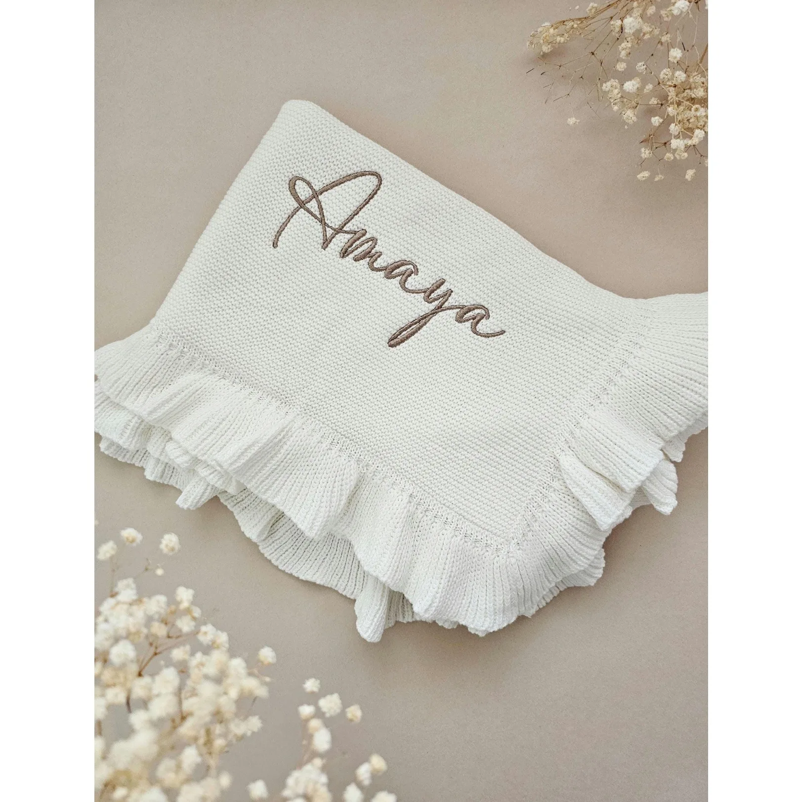 Personalized Baby Ruffle Edge Knitted Blanket Infant Cotton Wool Cart Blanket Children's Bed Mantas Para Bebé Muslin Swaddle